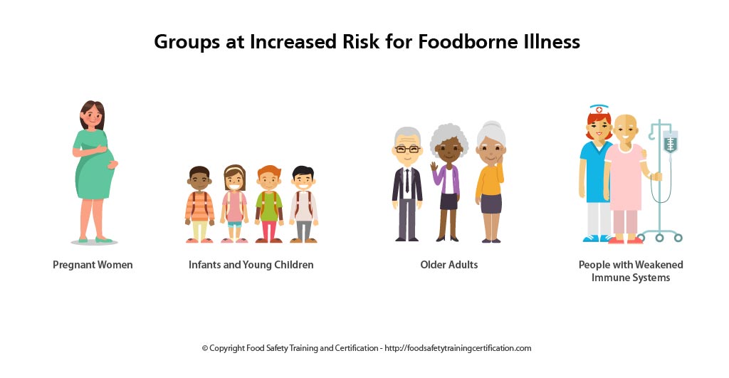 Foodborne illness can affect anyone who eats contaminated food. However, certain populations are more susceptible to becoming ill with a greater severity of illness. These groups include: